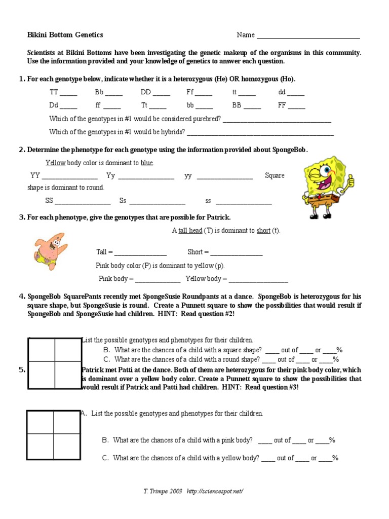 Watch online and download spongebob squarepants season 02 cartoon in high quality. Punnett square worksheet 640 629 multiple alleles practice. Mendelian genetics with the simpsons by indigoandviolet teaching. Sciencespot answers spot free spongebob genetics answers | latest. Only a spongebob expert can answer these 16 trivia questions.